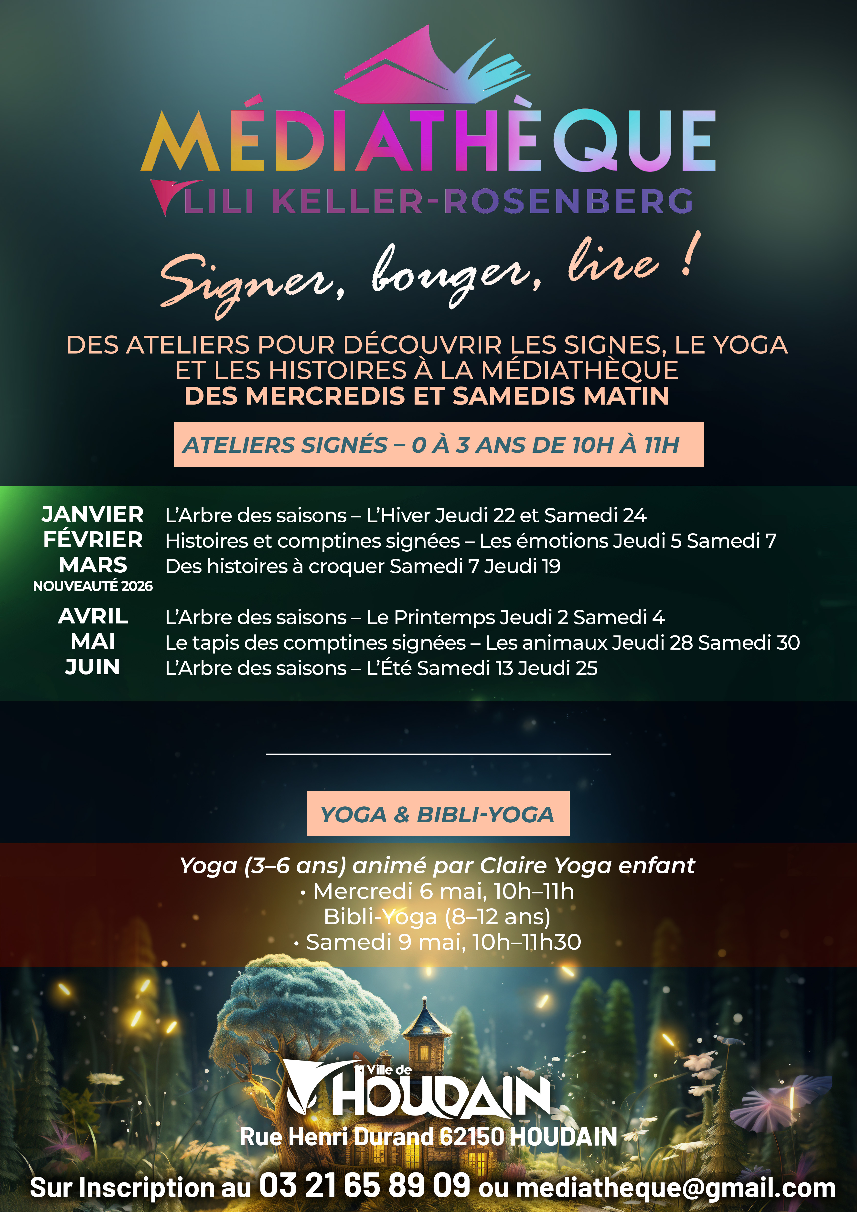 Retrouvez toutes les informations et actualitées sur le site de la médiatèque https://houdain.bibli.fr/